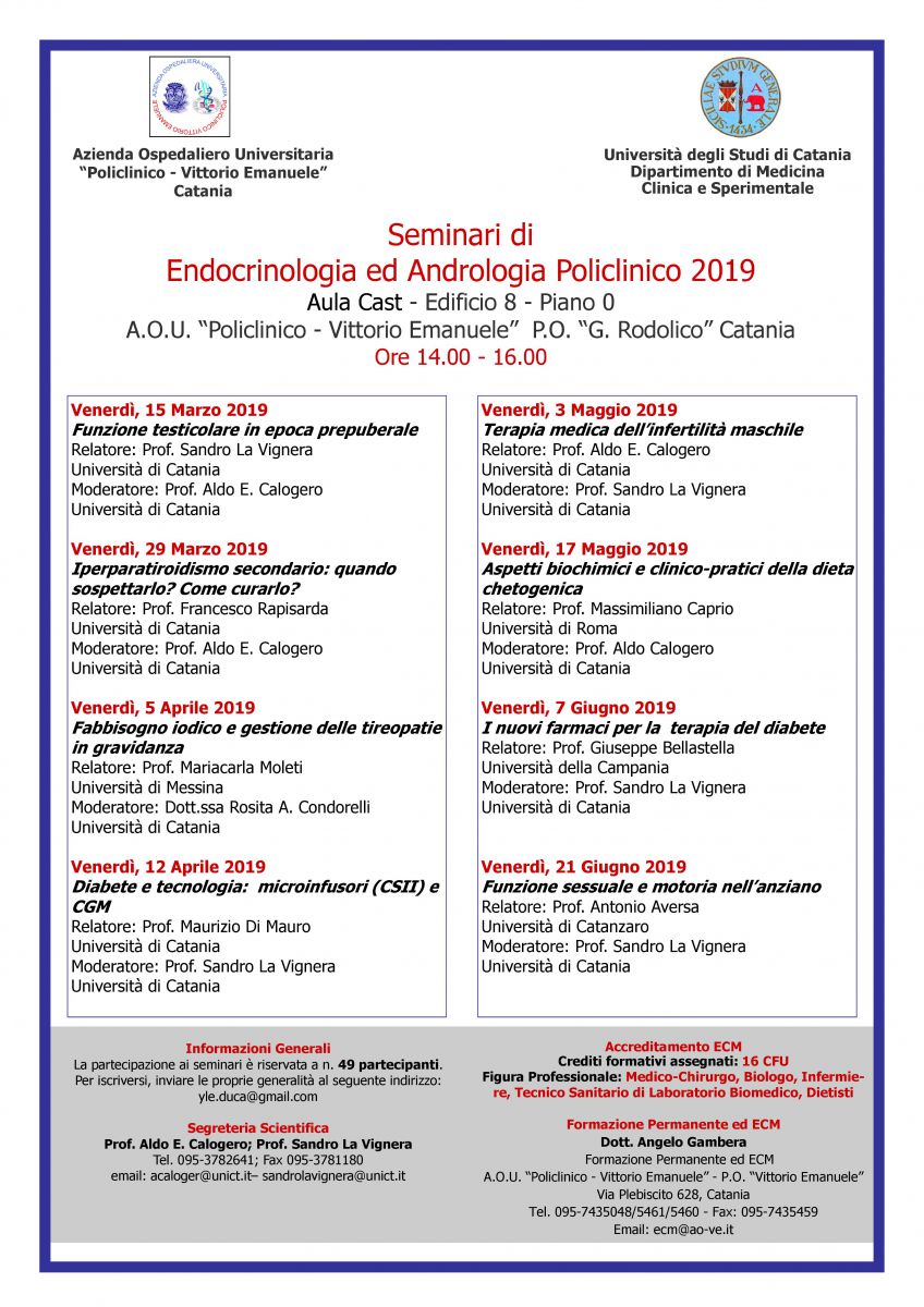 Venerdì, 21 giugno 2019, per il Ciclo di seminari 'Endocrinologia ed Andrologia Policlinico 2019', l'ultimo evento su "Funzione sessuale e motoria nell'anziano" (Aula Cast - Edificio 8 - Piano 0 - A.O.U. “Policlinico - Vittorio Emanuele” P.O. “G. Rodolico” Catania), dalle ore 14.00 alle ore 16.00.