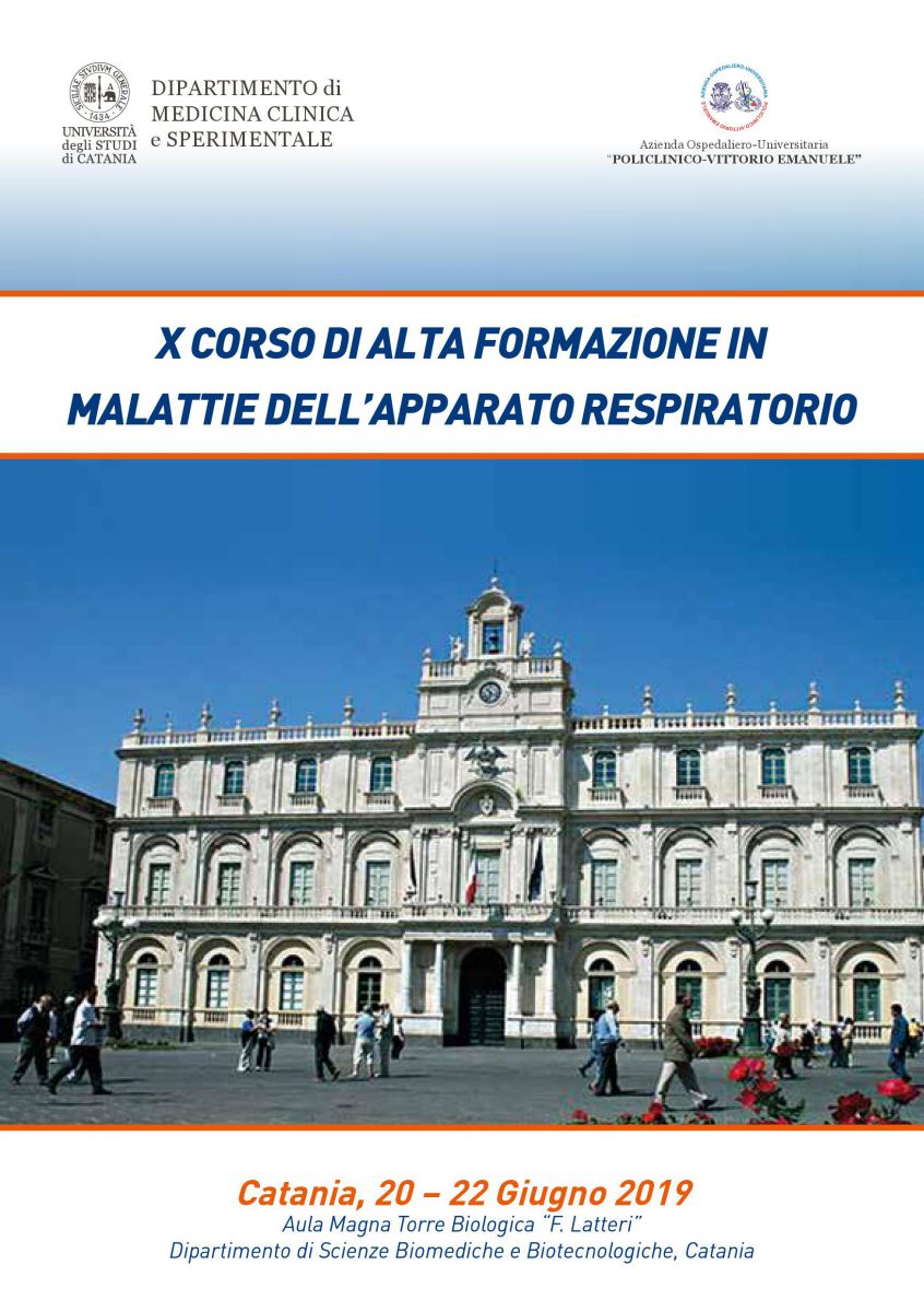20, 21 e 22 giugno 2019 il X Corso di Alta Formazione in Malattie dell'apparato respiratorio presso l’Aula Magna della Torre Biologica “F. Latteri”.