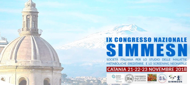 Il 21, 22 e 23 novembre 2018 si terrà, presso l'Hotel Baia Verde di Acicastello (Ct), il IX Congresso Nazionale della SIMMESN (Società italiana per lo studio delle Malattie Metaboliche Ereditarie e lo Screening Neonatale) dal titolo “Le Malattie Metaboliche Ereditarie: tra presente e futuro”.