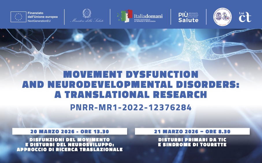 Il 20 e 21 marzo 2026, presso l’Aula Magna della Torre Biologica dell’Università di Catania, si terrà il convegno internazionale “Movement Dysfunction and Neurodevelopmental Disorders: A Translational Research”, nell’ambito del progetto PNRR-MR1-2022-12376284.