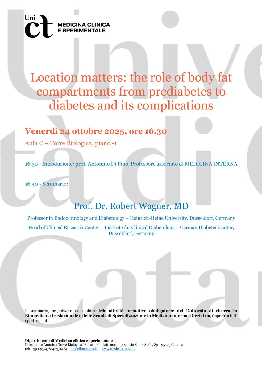 Seminario: Location matters: the role of body fat compartments from prediabetes to diabetes and its complications | Prof. Robert Wagner, Heinrich-Heine University, Düsseldorf