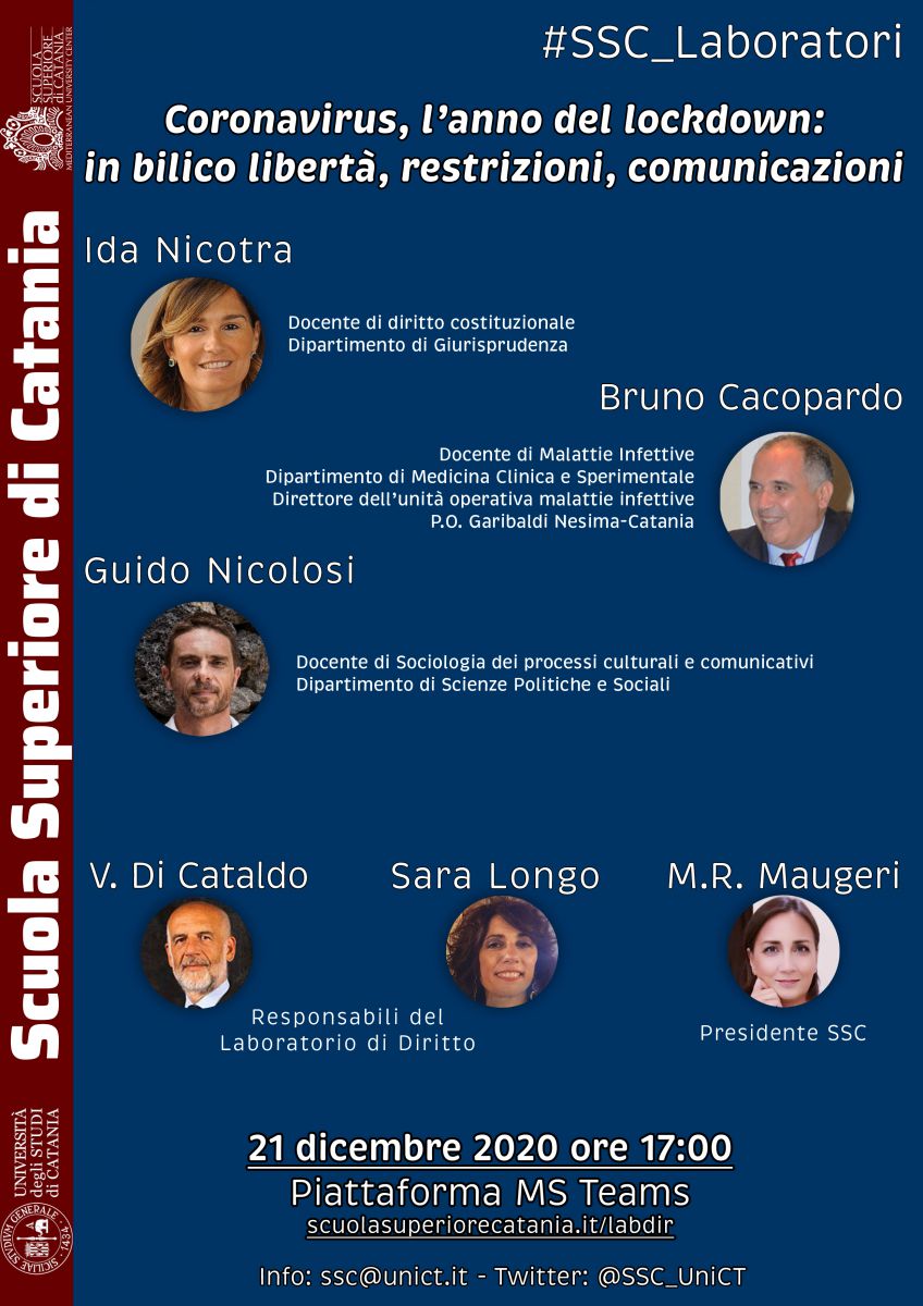 L'occasione è l’incontro dal titolo “Coronavirus, l'anno del lockdown: in bilico libertà, restrizioni e comunicazioni” promosso dalla Scuola Superiore di Catania nell’ambito del ciclo di incontri “Diritti e Libertà”, organizzato dal Laboratorio di Diritto della SSC per l’anno accademico 2020/21.