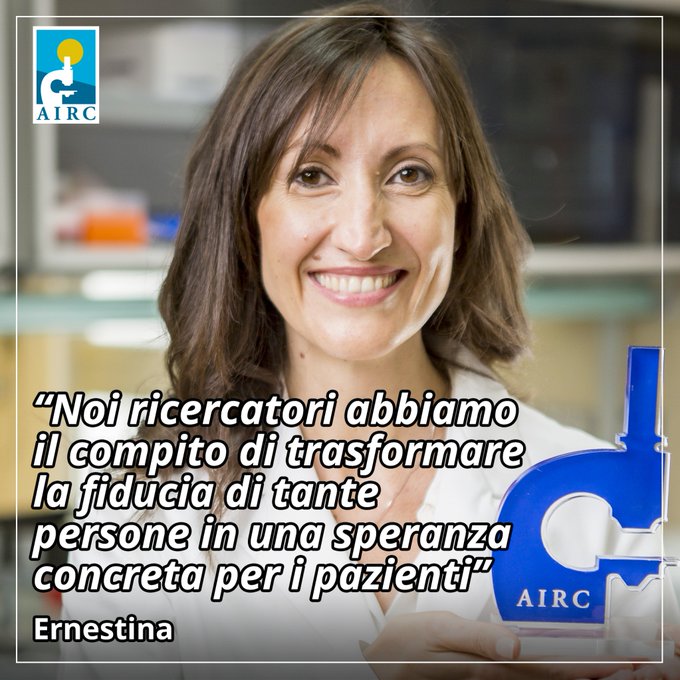 Quando si trova per la prima volta a passare una giornata in laboratorio, Ernestina ha la folgorazione: alla fine di quel primo giorno al bancone torna a casa “con stampato in faccia un sorriso ebete”. Era scoccato l’amore a prima vista, che l’ha poi spinta a scartare l’idea di una tesi di laurea compilativa e di optare invece per una tesi sperimentale, più impegnativa. Il tirocinio obbligatorio di sei mesi in farmacia, a contatto con le persone, le conferma che non è quella la sua strada. “Il laboratorio in cui mi sono formata all’Università della Calabria ha ottenuto risultati importanti, e ha una lunga storia di finanziamenti AIRC. È lì che ho appreso l’importanza di coordinamento, ottimizzazione dei tempi, gioco di squadra. Adesso, anche quando in famiglia ci ritroviamo in cucina a preparare i pasti, non posso fare a meno di pianificare il lavoro di tutti nei dettagli” scherza con autoironia.